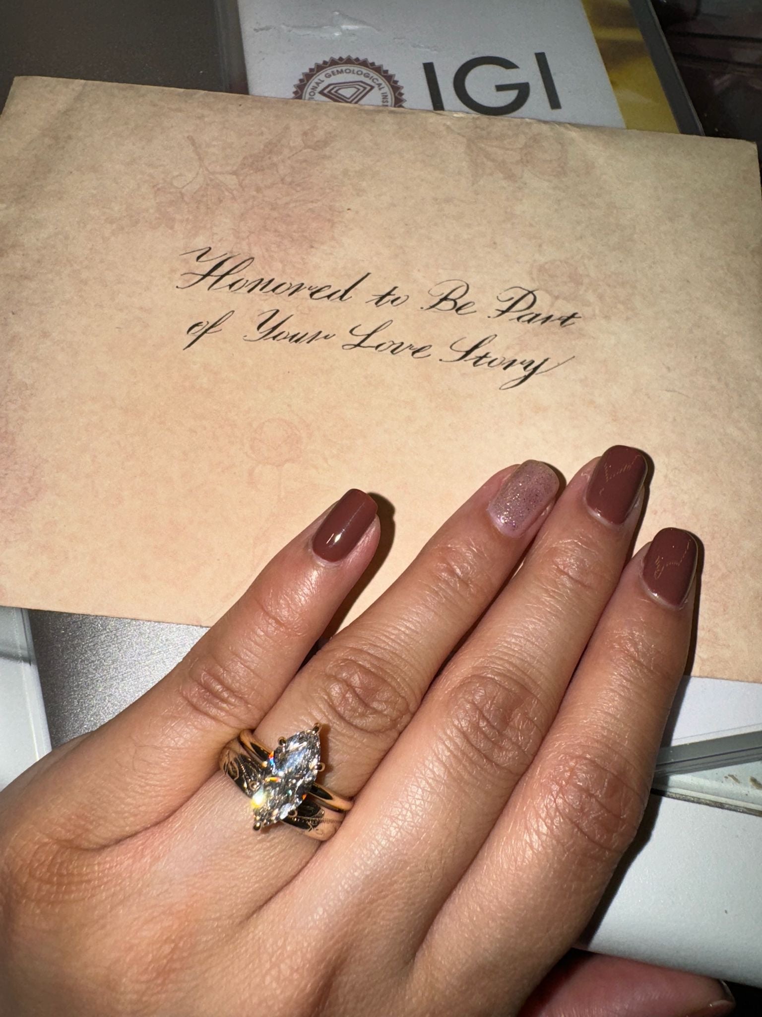 I received my ring. Absolutely gorgeous. Thank you so much.